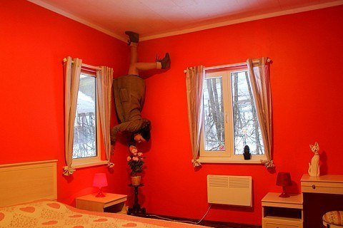 Идея интерактивной площадки, представляющей перевернутое жилище, не нова, однако продолжает стремительно набирать популярность во всем мире. Различные «дома-перевертыши» есть в Америке, Европе и Азии. Самые известные смотрят фундаментом в небо в столице Украины, в польской деревне Шимбрак, в японском городе Мацумото и в немецком Трассенхайде. К примеру, в американском Висконсине можно посетить точную копию опрокинутого Белого дома.