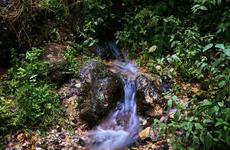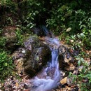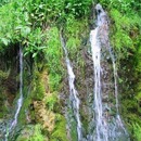 Водопад действительно красивый. Он небольшой. В зарослях деревьев, на берегу реки. Падает где-то с 5 метров в три потока. Склон горы, по которому он течёт, густо порос блестящим ярко-зелёным мхом. Струи бурлят и брызжутся. Вода ледяная. Этот родник-исток начинается где-то высоко и бежит, журчит по камням, а здесь в этом месте уже падает с обрыва вниз как водопад.