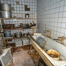 All the tables and chairs are gathered in one of the rooms at camp. The dining room is full of chaus and complete destruction. There isn't anything interesting in the living buildings, except beds and toilet sinks. The huge misted windows demonstrate the level of humidity inside the camp. The roof extremely leaks. Also, you should pay attention to the condition of the parquet. It is hard to believe that once it was a place where children took rest on vacation.