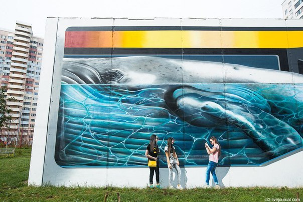 We present you a new graffiti situated in Moscow suburbs. The giant 3D aquarium with a whale in it.