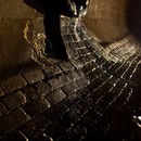 The underground river flows very quickly. When I was still walking there, it started raining. The water became turbid and increased intensively. I decided to come out to the surface as it is rather dangerous to be there when it's raining. All the water streams underground from the surface and the collector gets filled almost to the very top.