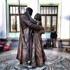A bronze sculpture depicting a soldier with a rifle and a girl embracing him will welcome and see off long distance trains at the Belorussky Station.