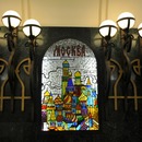 I've recently been to a rather new subway station "Trubnaya" in Moscow. It was opened on August 30, 2007. The station left a positive impression on me and, in my opinion, can be put in one line with the most beautiful metro stations in Moscow. The main elements of its design are illuminated stained glass mosaics with images of historic Russian cities (such as Rostov, Novgorod, Yaroslavl and others) and big pictures above every passages in the central hall. The author of the mosaics and pictures is Zurab Tsereteli.