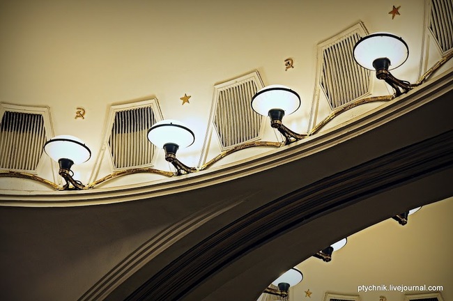 Considered to be one of the most beautiful in the system, Mayakovskaya is a fine example of pre-World War II Stalinist Architecture and one of the most famous Metro stations in the world. The name as well as the design is a reference to Futurism and its prominent Russian exponent Vladimir Mayakovsky.