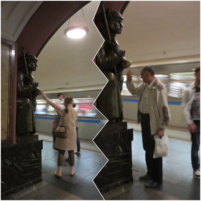 Я прибыл на станцию «Площадь революции» ( в дневное время, чтобы никому не мешать) и решил проверить - так ли это? И кто, кроме меня, так считает? Осмотрел все скульптуры и составил свой собственный рейтинг «ПОТИРАНИЯ СКУЛЬПТУР» с целью вымолить у судьбы кусочек счастья.