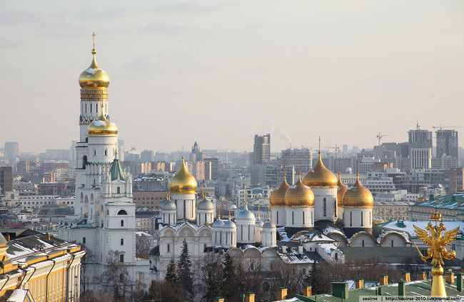 5. Соборная площадь и гербовый орел исторического музея, на фоне колокольни Ивана Великого: