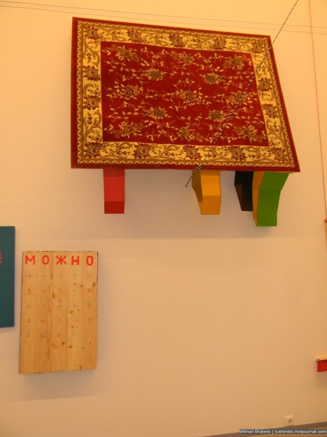 До 20 января в Мультимедиа Арт Музее проходит выставка "Восстание тренажёров миропорядка" арт-группы ЕлиКука. Гости выставки сами дёргают за верёвочки, управляя этим абсурдным миром.
