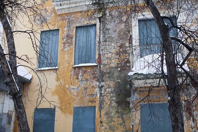 Пробраться внутрь проблематично, т.к. все окна и двери заколочены.