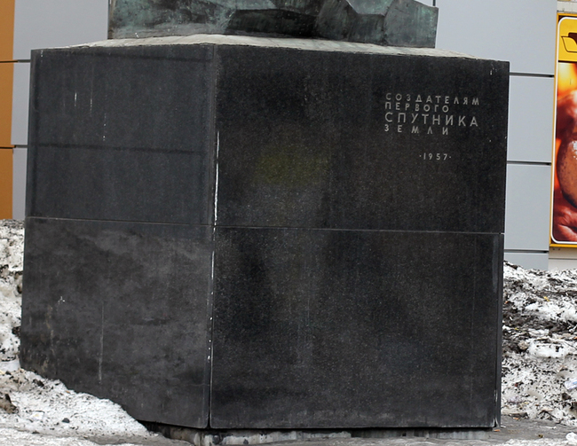 На постаменте памятника надпись: «Создателям первого спутника Земли. 1957 год.», однако памятник был установлен в 1958 году.