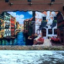 У ресторана «История» рядом со входом нарисовали потрясающую картину, переносящую из зимней Москвы в город какой-то другой теплой страны. Очень похоже на окно в солнечную Венецию.