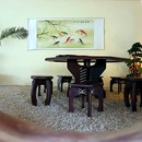 Уникальность этой чайной заметная сразу же - огромное окно, выходящее во двор. Зала наполнена светом, но надежна защищена от любопытных взглядов.