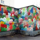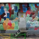 Неожиданно - кошачий арт-объект располагается не в парке, не в музее и вовсе не в питомнике. Затерялся он во дворах улицы Гайворонской и украсил своим разноцветным кото-весельем поверхность электрощитовой комнаты. Рисунки кошек выполнены в одной технике, но у каждого нарисованного обладателя усов - свое особое выражение мордочки,