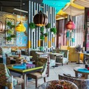 В интерьере ресторана преобладают яркие цвета, текстиль с пёстрыми принтами и индийские люстры-груши. В заведении один зал площадью 369 квадратных метров, рассчитанный на 102 гостей, и ещё шесть гостей могут посадить за баром.