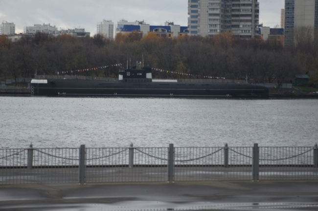 На другом берегу - музейный самолет с трапом для туристов и подводная лодка, тоже для посещений.