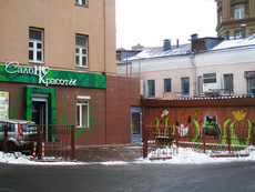 Во дворе дома №10 по Смоленскому бульвару живёт лягушка. Живёт она рядом с салоном красоты и, собственно, является элементом привлечения внимания к салону, как бы рекламным граффити, ну как витрина для магазина. Только вот лягушка какая-то не красавица совсем получилась. Просто накрашенная жаба :-) Ну согласитесь, это оригинально - жаба как символ салона красоты!!