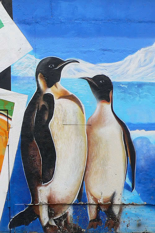 Эта расписная трансформаторная будка с забавными пингвинами расположена в районе станции метро "Юго-Западная". Надпись, кажется, гласит: «Сохрани живое, а не фотографии».