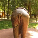 А по обе стороны этой аллеи скульптор Андрей Асерьянц поместил персонажей из двух известнейших басен нашего знаменитого баснописца Ивана Андреевича Крылова. С одной стороны — «Ворона и Лисица». С другой, в окружении необычных «пляшущих» детских домиков, на пригорке стоят «Слон и Моська».