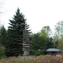 В местах, где дорожки расширяются, надо остановиться и посмотреть вокруг. Идеологический и архитектурный центр сада - 13 ярусная пагода 18 века. Привезена из буддистского монастыря. Ярусы между собой ничем не скреплены, а как пирамидка просто стоят друг на друге. За 25 лет существования сада этот факт не раз проверялся - пагоду четыре раза разбирали до основания!! На этом фото особый смысл в сочетании пагоды и ели.