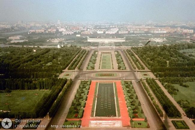 Так выглядели сквер перед МГУ и Лужники примерно в 1966-1970 годах: