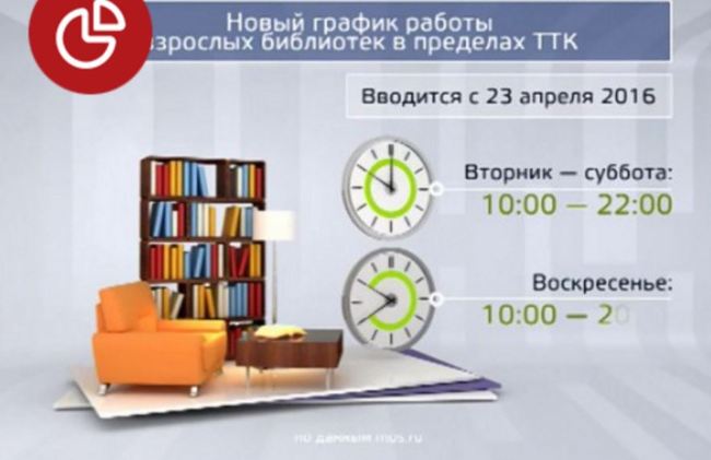 "Акция "Библионочь" в этом году пройдет 23 апреля, мы уже готовим разные сюрпризы. Также, 23 апреля будет Всемирный день книги и авторского права. С этого же дня в Москве вступает в силу новый график работы библиотек. Те библиотеки, которые находятся в центре столицы будут работать с 10:00 до 22:00, а те, которые расположены за Третьим транспортным кольцом с 12:00 до 22:00 часов. Выходной будет единым, как в музеях – понедельник", – пояснил Кибовский.