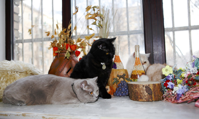 Я побывала в одном кафе, где в свободном перемещении находятся 3 кота. Это кафе "Солод" около метро ВДНХ. Вот их сайт.