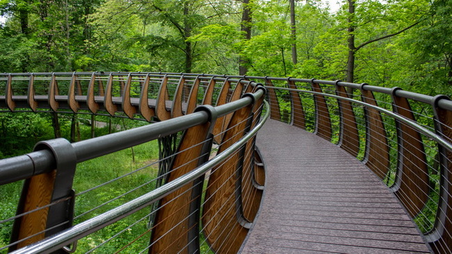 Основу маршрута составляет прочная деревянная конструкция, протянувшаяся между вековых дубов возрастом 150 лет.