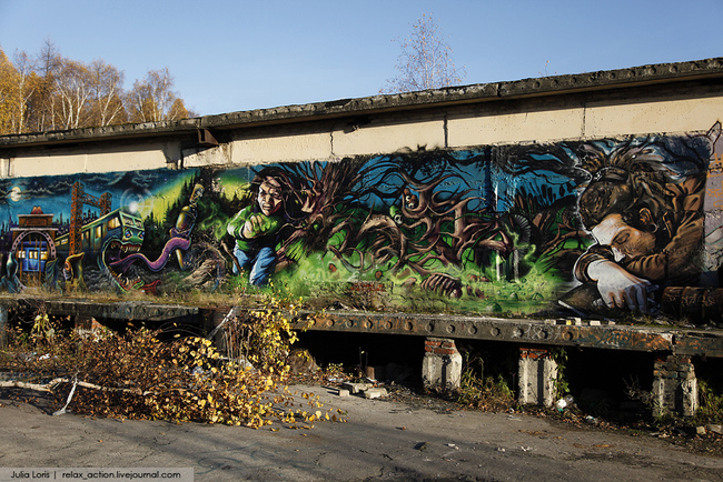On the territory of the national park "Losiny Ostrov", there are some abandoned storehouses. On their walls there are very interesting graffiti. The author is a young artist Pavel 183.