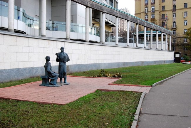 In 2007 when the first book released by Arthur Conan Doyle "A Study in Scarlet" celebrated its 120th anniversary in Moscow was installed a monument to the famous heroes of English literature - Sherlock Holmes and Dr. Watson. The monument appeared in Smolenskaya Embankment not far from the building of the British Embassy. As far as is known it is the only sculpture composition in the world depicting the legendary detectives in tandem.