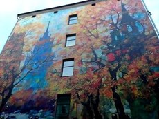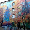 This beautiful graffiti is hidden in the courtyards of Arbat Street. Walking in the district you’ll be surprised to find the gorgeous autumn landscape of Moscow.