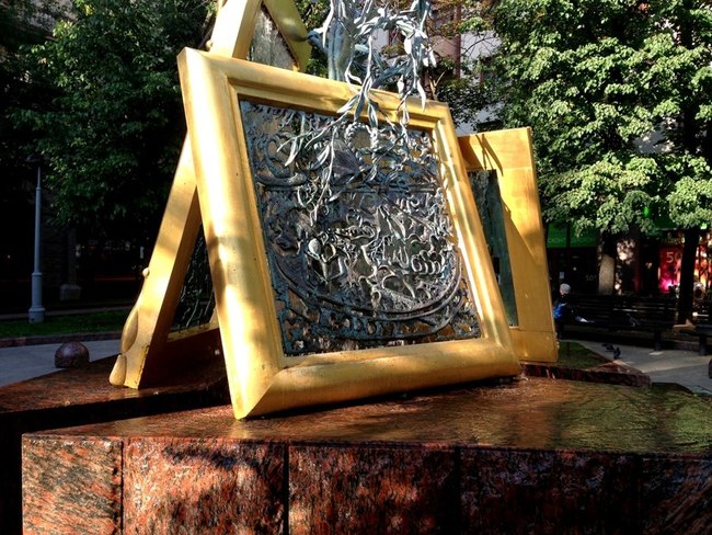 The fountain consists of three canvases symbolizing three genres of painting art – a portrait, a still life and a landscape.