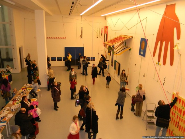 До 20 января в Мультимедиа Арт Музее проходит выставка "Восстание тренажёров миропорядка" арт-группы ЕлиКука. Гости выставки сами дёргают за верёвочки, управляя этим абсурдным миром.