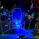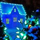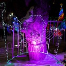 Световая картинка на ёлке, деревьях парка и домах-декорациях меняется под музыку.
