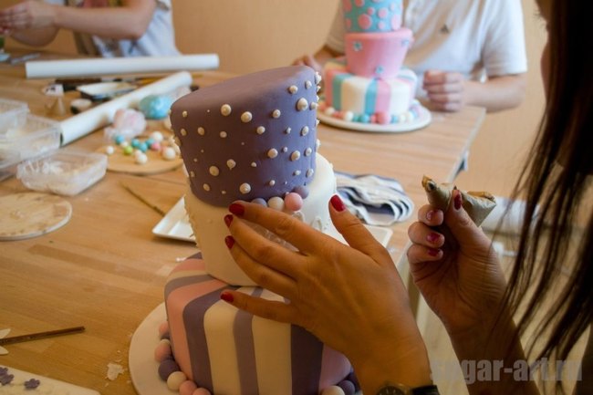 На уроках вы ЛИЧНО создадите макетный торт, и он будет презентацией ваших навыков и умений. Опытные мастера сделают все, чтобы вам поддалась английская техника декорации тортов.