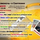 • Встреча «Чемоданное настроение». Вас ждут практики удачных путешествий, туризм по правилам и без. Рассказы фотохудожников, журналистов, велопутешественников о необычных увлекательных и бюджетных способах узнавать мир. А так же розыгрыш туристических путёвок.