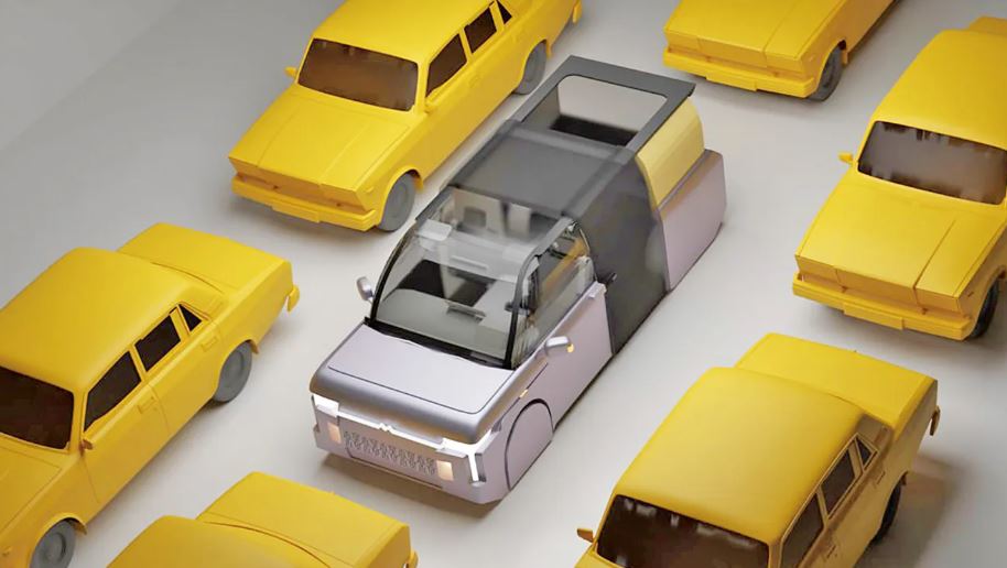 Общая концепция проекта — такси для столицы с оригинальным обликом. Менторство осуществлял «Москвич»: завод задал габариты и уточнил, где должно начинаться ветровое стекло. Цвет авторы выбрали редкий — серо-голубой с лиловым отливом; в сочетании с желтыми элементами он усиливается, делая такси ярким и узнаваемым. Внешний облик позволяет машине выглядеть гармонично на фоне застройки любого типа, что в Москве с ее эклектикой как нельзя кстати. Автомобиль задумывался максимально удобным, салон — понятным и комфортным. И простота форм этому способствует.
