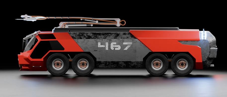 Из вводных данных на этом проекте были габаритная база и варианты шасси — трех- или четырехосного. Автор выбрал трехосную «тележку» с двигателем над второй осью. Такое расположение позволило сделать кабину кабину очень низкой, а ветровое стекло — огромным. В итоге обзор у водителя прекрасный и без мертвых зон: для работы с пожарами на аэродроме это важно.