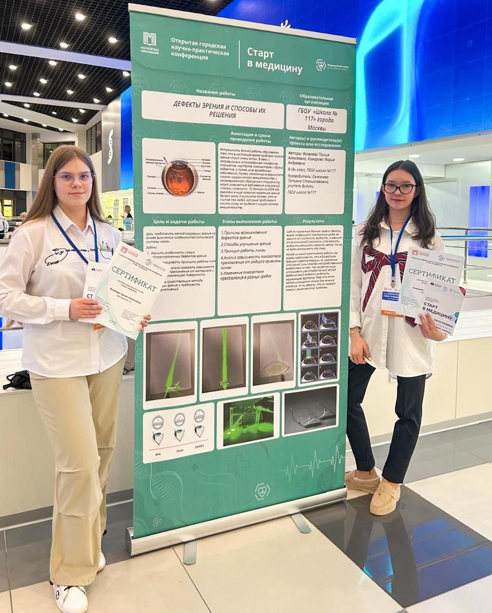 «Мы нашли альтернативу очкам, линзам и лазерной коррекции зрения. Сперва, только выбрав направление, изучали строение глаза. Затем пробовали определять показатель преломления света. Для этого лазерный луч пропускали через толстую линзу размером с ладонь. Так появилась уникальная идея: в роговицу можно вводить специальное вещество с нужным коэффициентом преломления. Оно будет правильно направлять лучи, а человек — лучше видеть. При этом вещество должно быть безопасным и не создавать дискомфорт глазам. Возможно, однажды нам удастся его разработать», — говорит 16-летняя Таисия Яковлева.