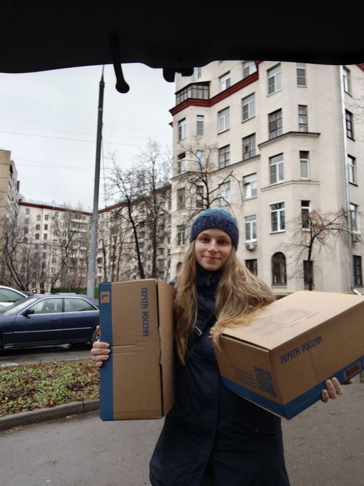 •В этом году у меня 2 бабушки из посёлка в Костромской области. Отправила посылки почтой. Каждая вышла по 6 кг с хвостиком, коробки брала на почте (размер L), но можно и свою коробку, конечно. Единственное, Почта всегда требует без надписей и логотипов, иначе заставят упаковывать коробку в их пакет (платный).