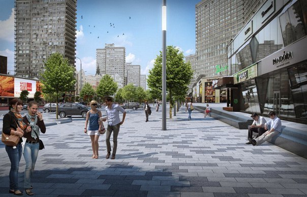Согласно выбранной концепции, противоположные стороны Нового Арбата будут разными. Со стороны знаменитых книжек тротуар станет местом проведения городских праздников и различных мероприятий. А рядом с жилыми домами через дорогу собираются высадить остролистные клены, чтобы было тише и спокойнее.