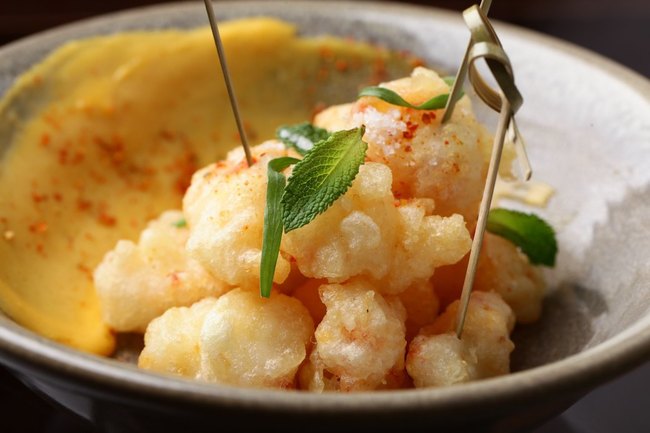 Закуски для Santo Spirito готовят наверху, на кухне Haggis. В меню есть уже опробованные шефом вещи, например креветки «попкорн» с майонезом том ям из меню «Чугунного моста» и вкуснейшая панна-котта из копчёной пикши, сверху которой лежит половина яйца, на место желтка в которое помещён крем из мидий и желток, смешанный со срирачей, ещё выше — каперсы и чипсы из куриной кожи. Это блюдо Дмитрий готовил на мастер-классе Omnivore в этом году, оно же было в фестивальном меню в Haggis. Кроме них, в меню есть усовершенствованные оливки, от которых не оторваться, очень вкусные «скотч эгг», тапас из хрустящего папада, на котором лежит тунец, и кунжутный соус и немы с креветками, мятой и эстрагоном. Редкое сочетание хорошего бара и хорошей кухни под одной крышей в действии.