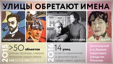 Есть в столице совсем безликие названия, что называется, ни уму, ни сердцу. Например, всевозможные проектируемые проезды под разными номерами, верхние и нижние тупики и т.д. Но несколько лет назад власти решили их переименовать в честь известных людей. Так, в 2015 году в Москве появились улицы Высоцкого, Арсения Тарковского, Святослава Рихтера, Николая Клюева и других деятелей культуры и искусства. Еще часть улиц и скверов назвали в честь ветеранов.