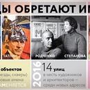 В этом году проезды продолжат переименовывать. Например, на территории бывшего завода имени Лихачева появится целый квартал авангардистов и конструктивистов: бульвар Братьев Весниных, набережная Марка Шагала, улицы архитекторов Гинзбурга, Голосова, Щусева, Мельникова и Леонидова. А также улицы художников Кандинского, Родченко, Татлина, Юдина. На улицах с такими именами просто обязано появиться что-то выдающееся! Так и будет, в квартале откроют филиал петербургского «Эрмитажа», где выставят часть коллекций современного искусства. А рядом разместится кукольный и драматический театр.
