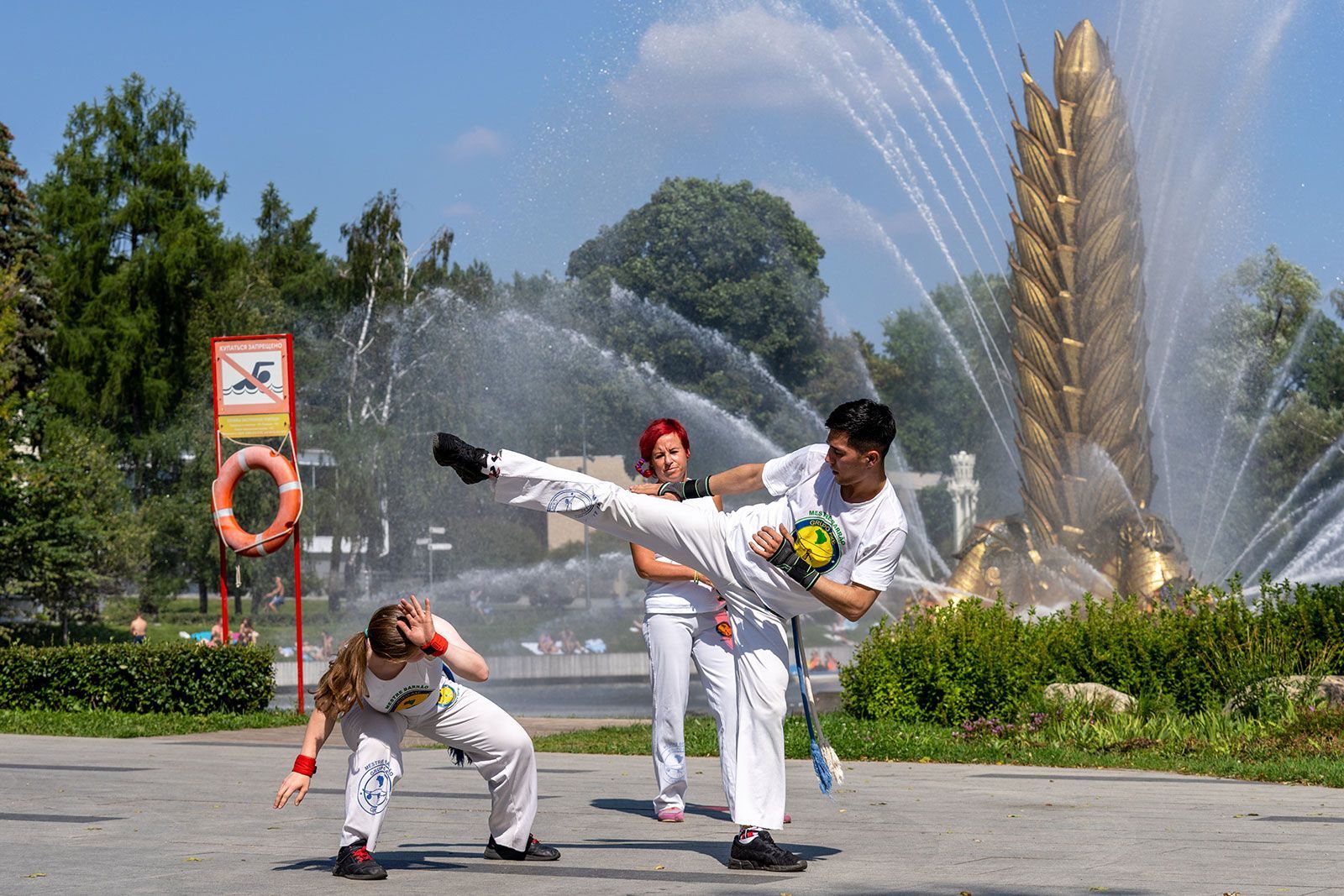 С 12:30 до 16:00 на площадке перед Музеем кино состоятся показательные выступления и мастер-классы по капоэйре — бразильскому боевому искусству, сочетающему в себе элементы акробатики, танца, игры и музыки. Занятия проведет судья, участница и призер чемпионатов России, Москвы и Московской области по капоэйре Анастасия Ким.