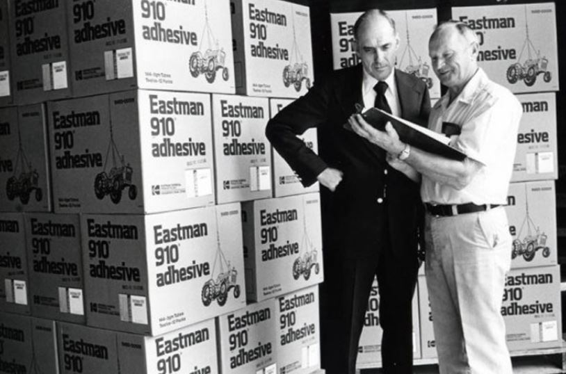 Гарри Кувер изначально вовсе не стремился создать суперклей. Работая в 1942 году в компании Eastman Kodak, он пытался синтезировать прозрачные материалы для оптических приборов. Полученный цианоакрилат казался абсолютно бесполезным веществом, поскольку был чрезвычайно липким. Лишь спустя восемь лет Кувер снова столкнулся с этим материалом и осознал его уникальные адгезионные качества. Через семь лет исследований он смог представить публике уникальный продукт — супер-клей Eastman 910. Для рекламы клея Кувер даже участвовал в телевизионном шоу, демонстрируя прочность материала, приклеившись к потолочной конструкции. Широкая популярность пришла быстро, и клей вскоре широко использовался для ремонта бытовых предметов и техники.