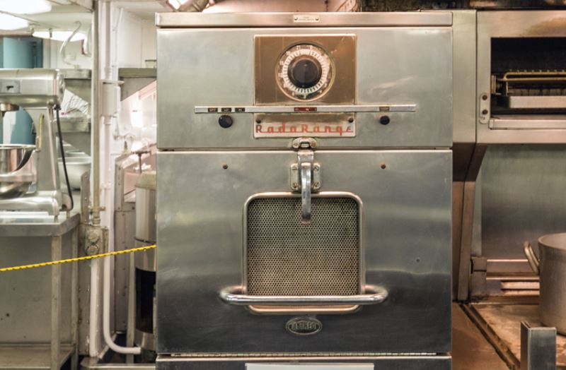 Перси Л.Спенсер, американский инженер, работавший в компании Raytheon, специализирующейся на производстве радиолокационного оборудования, однажды испытал любопытный инцидент. Занимаясь настройкой магнетрона, он почувствовал, как таящийся в кармане шоколад начал таять. Заинтересовавшись феноменом, он продолжил эксперименты с пищей: попробовал нагреть кукурузные зёрна, получив вкусный горячий попкорн, а затем положил яйцо в чайник рядом с магнетроном — оно взорвалось и окатило грязью коллегу, стоящего поблизости. Эти события привели Спенсера к мысли, что пищу можно эффективно нагревать в закрытой металлической камере. Первую рабочую версию микроволновых печей он представил в 1945 году, а серийное производство началось двумя годами позже. Вес первых моделей достигал сотен килограммов, а стоимость превышала пять тысяч долларов.