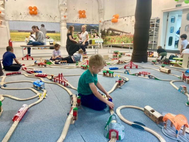 Целый мир извилистых путей и мостов, поездов и тоннелей. Каждую минуту в вырастают новые пункты назначения и маршруты, отправляются и прибывают составы. Каждый юный гость перестраивает страну поездов по своему желанию. Маленькие машинисты ведут свои поезда от станции к станции.