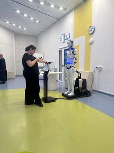 Он встречает посетителей у главного входа, помогает с навигацией по клинике, отвечает на вопросы и дает подсказки.
