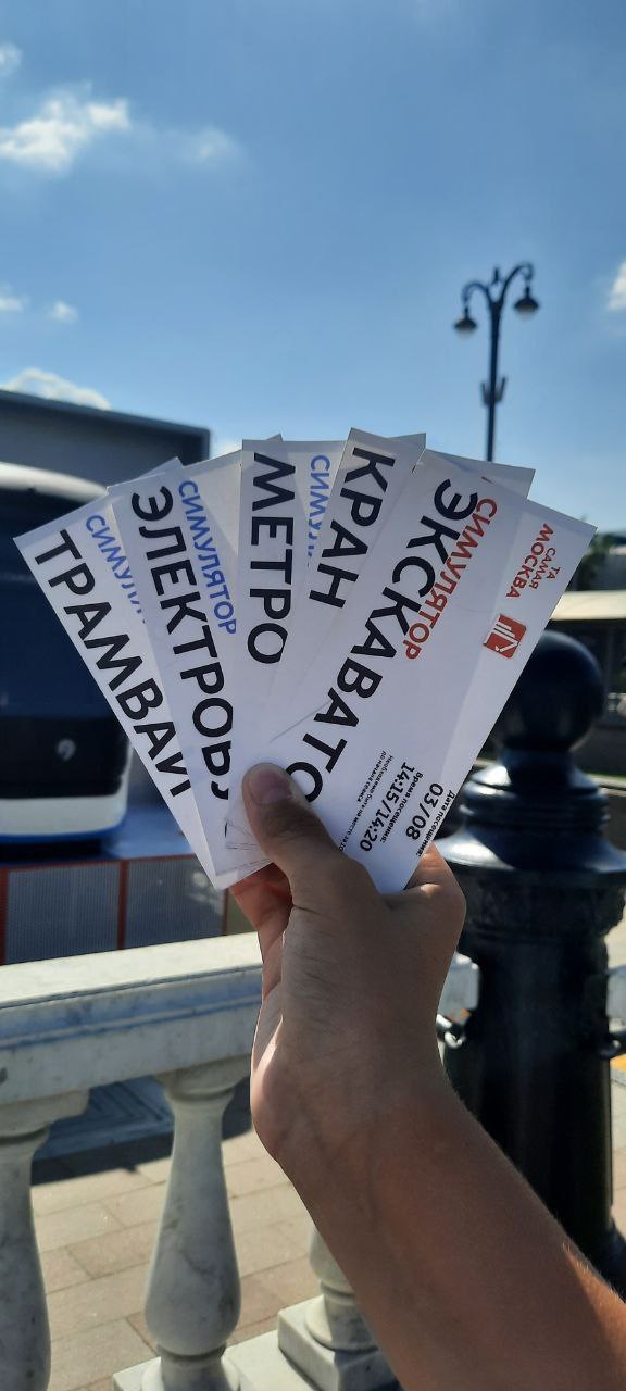 • Всего 7 симуляторов, они расположены на площадке перед Манежем: метро, трамвай, электробус, кран, экскаватор, бульдозер и Иволга