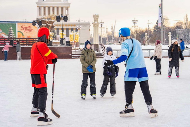 Анимационно-развлекательная программа начнется в 11:00. Компанию посетителям ВДНХ составят персонажи из мультимедийного центра «Союзмультпарк». В 12:00 на катке будет воссоздан хоккейный матч «Вымпел» — «Метеор» из мультипликационного сериала «Чемпионы». Во время перерывов для гостей праздника пройдут конкурсы и интерактивы «Союзмультпарка».