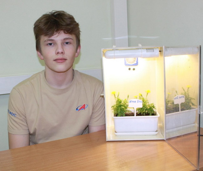 Николай Новиков, участник кружка «Микроскоп в медицине», под руководством кандидата педагогических наук Александра Викторовича Колоскова, изучает всхожесть и особенности развития бархатцев сорта «Маленький герой» в биологической лаборатории ЦЭО.